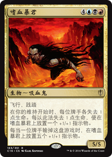 | Rules | Flying, trample At the beginning of your upkeep, each player loses 1 life. Put a +1/+1 counter on Blood Tyrant for each 1 life lost this way. Whenever a player loses the game, put five +1/+1 counters on Blood Tyrant. |