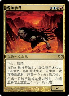 | Rules | Flying, trample At the beginning of your upkeep, each player loses 1 life. Put a +1/+1 counter on Blood Tyrant for each 1 life lost this way. Whenever a player loses the game, put five +1/+1 counters on Blood Tyrant. |