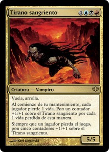 | Rules | Flying, trample At the beginning of your upkeep, each player loses 1 life. Put a +1/+1 counter on Blood Tyrant for each 1 life lost this way. Whenever a player loses the game, put five +1/+1 counters on Blood Tyrant. |