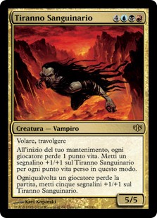 | Rules | Flying, trample At the beginning of your upkeep, each player loses 1 life. Put a +1/+1 counter on Blood Tyrant for each 1 life lost this way. Whenever a player loses the game, put five +1/+1 counters on Blood Tyrant. |