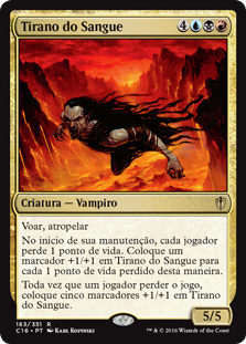 | Rules | Flying, trample At the beginning of your upkeep, each player loses 1 life. Put a +1/+1 counter on Blood Tyrant for each 1 life lost this way. Whenever a player loses the game, put five +1/+1 counters on Blood Tyrant. |