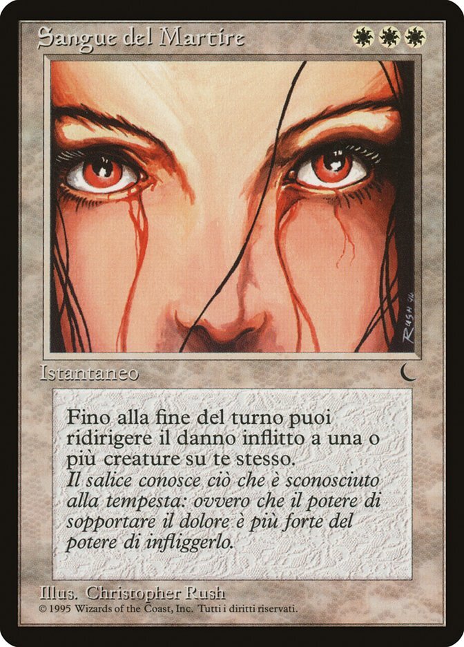 | Rules | Until end of turn, if damage would be dealt to any creature, you may have that damage dealt to you instead. |