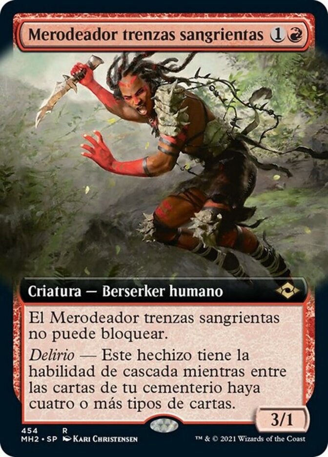 | Rules | Bloodbraid Marauder can't block. Delirium — This spell has cascade as long as there are four or more card types among cards in your graveyard. (When you cast this spell, exile cards from the top of your library until you exile a nonland card that costs less. You may cast it without paying its mana cost. Put the exiled cards on the bottom of your library in a random order.) |