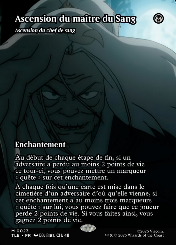 | Rules | At the beginning of each end step, if an opponent lost 2 or more life this turn, you may put a quest counter on Bloodchief Ascension. (Damage causes loss of life.) Whenever a card is put into an opponent's graveyard from anywhere, if Bloodchief Ascension has three or more quest counters on it, you may have that player lose 2 life. If you do, you gain 2 life. |