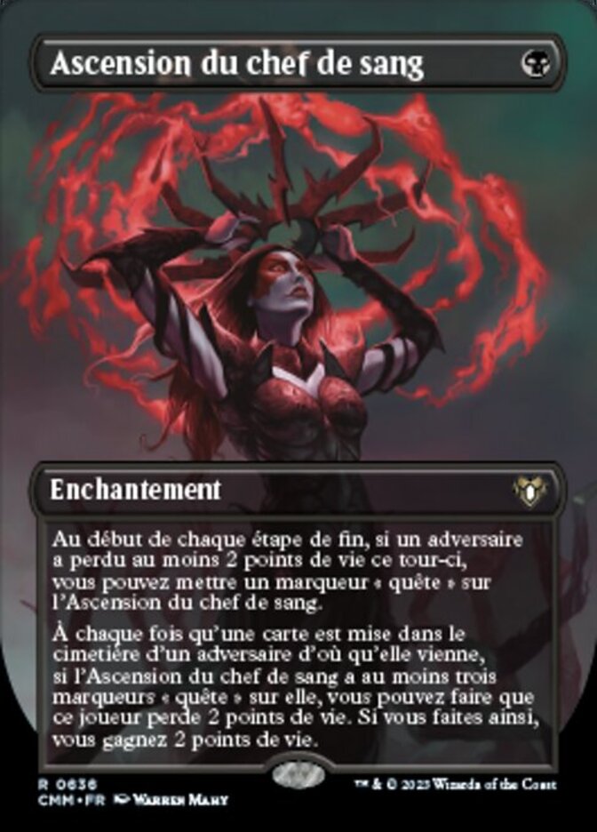 | Rules | At the beginning of each end step, if an opponent lost 2 or more life this turn, you may put a quest counter on Bloodchief Ascension. (Damage causes loss of life.) Whenever a card is put into an opponent's graveyard from anywhere, if Bloodchief Ascension has three or more quest counters on it, you may have that player lose 2 life. If you do, you gain 2 life. |