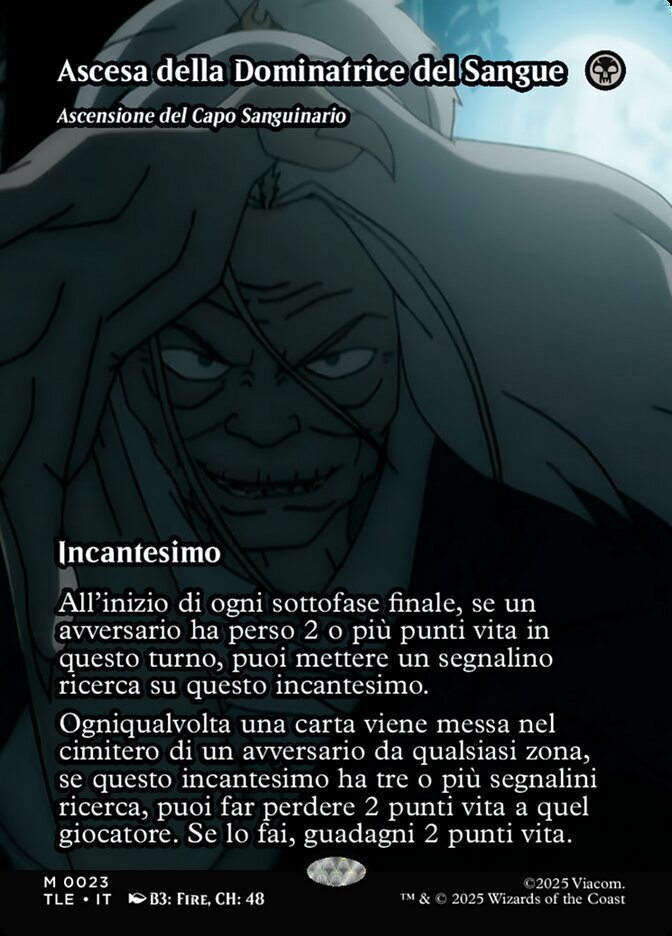 | Rules | At the beginning of each end step, if an opponent lost 2 or more life this turn, you may put a quest counter on Bloodchief Ascension. (Damage causes loss of life.) Whenever a card is put into an opponent's graveyard from anywhere, if Bloodchief Ascension has three or more quest counters on it, you may have that player lose 2 life. If you do, you gain 2 life. |