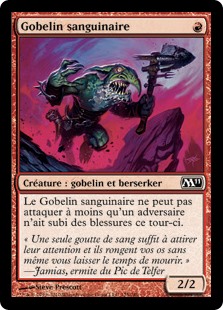 | Rules | Bloodcrazed Goblin can't attack unless an opponent has been dealt damage this turn. |