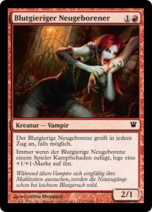 | Rules | Bloodcrazed Neonate attacks each combat if able. Whenever Bloodcrazed Neonate deals combat damage to a player, put a +1/+1 counter on it. |