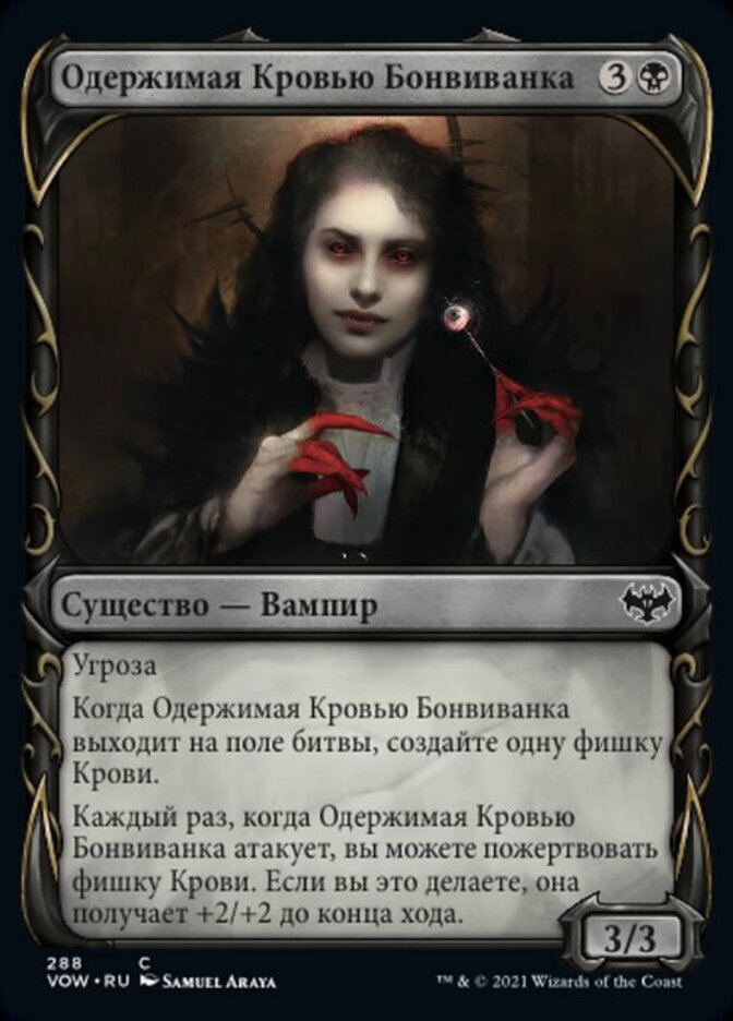 | Rules | Menace When Bloodcrazed Socialite enters the battlefield, create a Blood token. (It's an artifact with ", , Discard a card, Sacrifice this artifact: Draw a card.") Whenever Bloodcrazed Socialite attacks, you may sacrifice a Blood token. If you do, it gets +2/+2 until end of turn. |