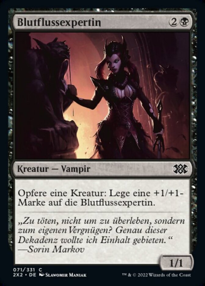 | Rules | Sacrifice a creature: Put a +1/+1 counter on Bloodflow Connoisseur. |