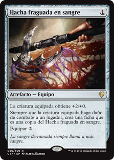 | Rules | Equipped creature gets +2/+0. Whenever equipped creature deals combat damage to a player, create a token that's a copy of Bloodforged Battle-Axe. Equip |
