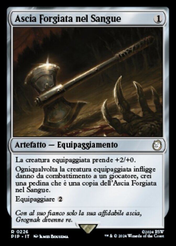 | Rules | Equipped creature gets +2/+0. Whenever equipped creature deals combat damage to a player, create a token that's a copy of Bloodforged Battle-Axe. Equip |