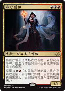 | Rules | Whenever Bloodhall Priest enters the battlefield or attacks, if you have no cards in hand, Bloodhall Priest deals 2 damage to any target. Madness (If you discard this card, discard it into exile. When you do, cast it for its madness cost or put it into your graveyard.) |