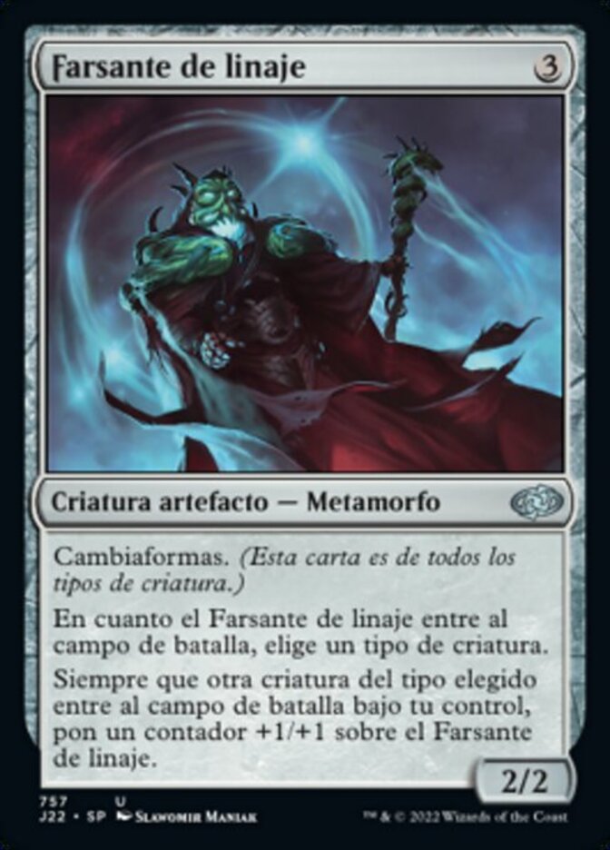 | Rules | Changeling (This card is every creature type.) As Bloodline Pretender enters the battlefield, choose a creature type. Whenever another creature of the chosen type enters the battlefield under your control, put a +1/+1 counter on Bloodline Pretender. |