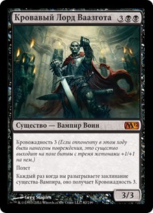 | Rules | Bloodthirst 3 (If an opponent was dealt damage this turn, this creature enters the battlefield with three +1/+1 counters on it.) Flying Whenever you cast a Vampire creature spell, it gains bloodthirst 3. |