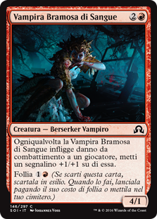 | Rules | Whenever Bloodmad Vampire deals combat damage to a player, put a +1/+1 counter on it. Madness (If you discard this card, discard it into exile. When you do, cast it for its madness cost or put it into your graveyard.) |