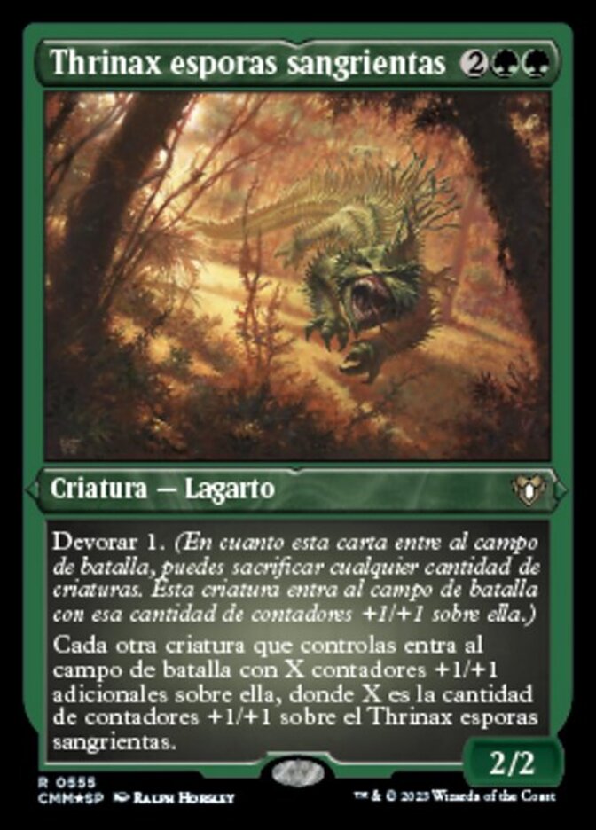 | Rules | Devour 1 (As this enters the battlefield, you may sacrifice any number of creatures. This creature enters the battlefield with that many +1/+1 counters on it.) Each other creature you control enters the battlefield with an additional X +1/+1 counters on it, where X is the number of +1/+1 counters on Bloodspore Thrinax. |