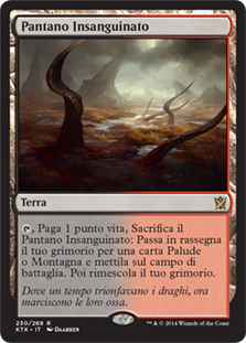 | Rules | , Pay 1 life, Sacrifice Bloodstained Mire: Search your library for a Swamp or Mountain card, put it onto the battlefield, then shuffle. |