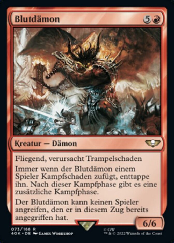 | Rules | Flying, trample Whenever Bloodthirster deals combat damage to a player, untap it. After this combat phase, there is an additional combat phase. Bloodthirster can't attack a player it has already attacked this turn. |