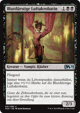 | Rules | Flying Whenever you gain life, put a +1/+1 counter on Bloodthirsty Aerialist. |