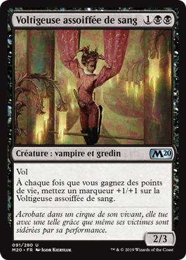 | Rules | Flying Whenever you gain life, put a +1/+1 counter on Bloodthirsty Aerialist. |