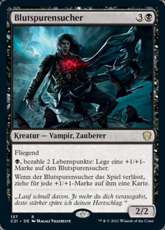 | Rules | Flying , Pay 2 life: Put a +1/+1 counter on Bloodtracker. When Bloodtracker leaves the battlefield, draw a card for each +1/+1 counter on it. |