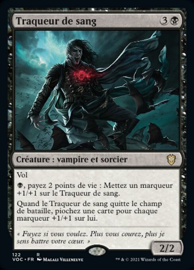 | Rules | Flying , Pay 2 life: Put a +1/+1 counter on Bloodtracker. When Bloodtracker leaves the battlefield, draw a card for each +1/+1 counter on it. |