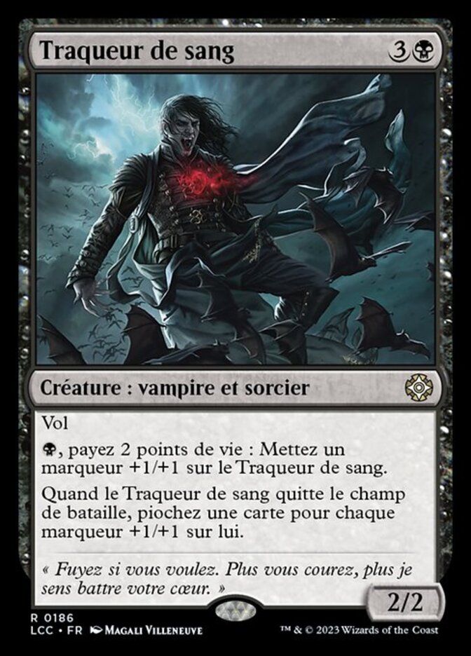 | Rules | Flying , Pay 2 life: Put a +1/+1 counter on Bloodtracker. When Bloodtracker leaves the battlefield, draw a card for each +1/+1 counter on it. |