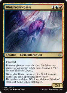 | Rules | Flying Prowess (Whenever you cast a noncreature spell, this creature gets +1/+1 until end of turn.) When Bloodwater Entity enters the battlefield, you may put target instant or sorcery card from your graveyard on top of your library. |
