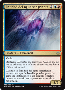 | Rules | Flying Prowess (Whenever you cast a noncreature spell, this creature gets +1/+1 until end of turn.) When Bloodwater Entity enters the battlefield, you may put target instant or sorcery card from your graveyard on top of your library. |
