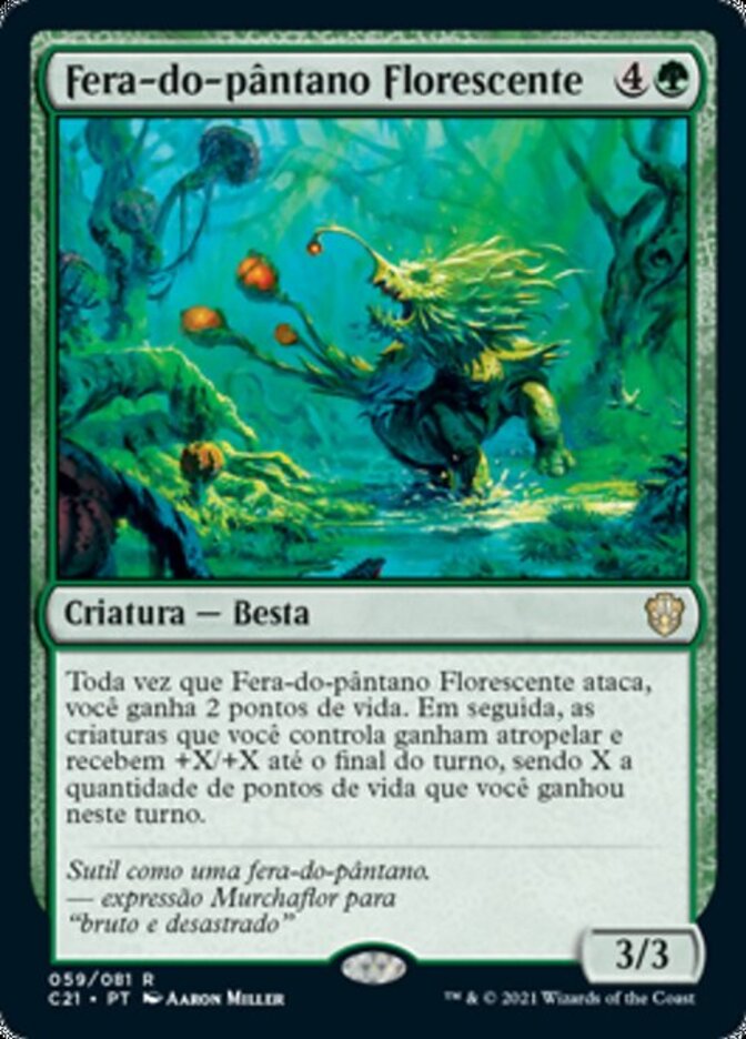 | Rules | Whenever Blossoming Bogbeast attacks, you gain 2 life. Then creatures you control gain trample and get +X/+X until end of turn, where X is the amount of life you gained this turn. |