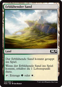 | Rules | Blossoming Sands enters the battlefield tapped. When Blossoming Sands enters the battlefield, you gain 1 life. : Add or . |