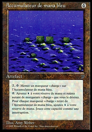 | Rules | , : Put a charge counter on Blue Mana Battery. , Remove any number of charge counters from Blue Mana Battery: Add , then add an additional for each charge counter removed this way. |