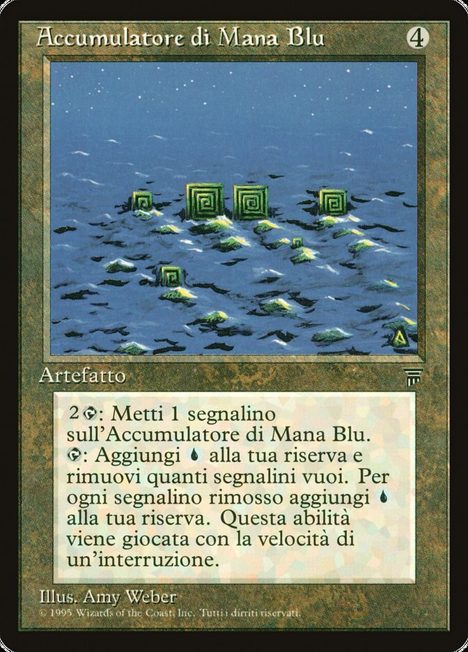 | Rules | , : Put a charge counter on Blue Mana Battery. , Remove any number of charge counters from Blue Mana Battery: Add , then add an additional for each charge counter removed this way. |