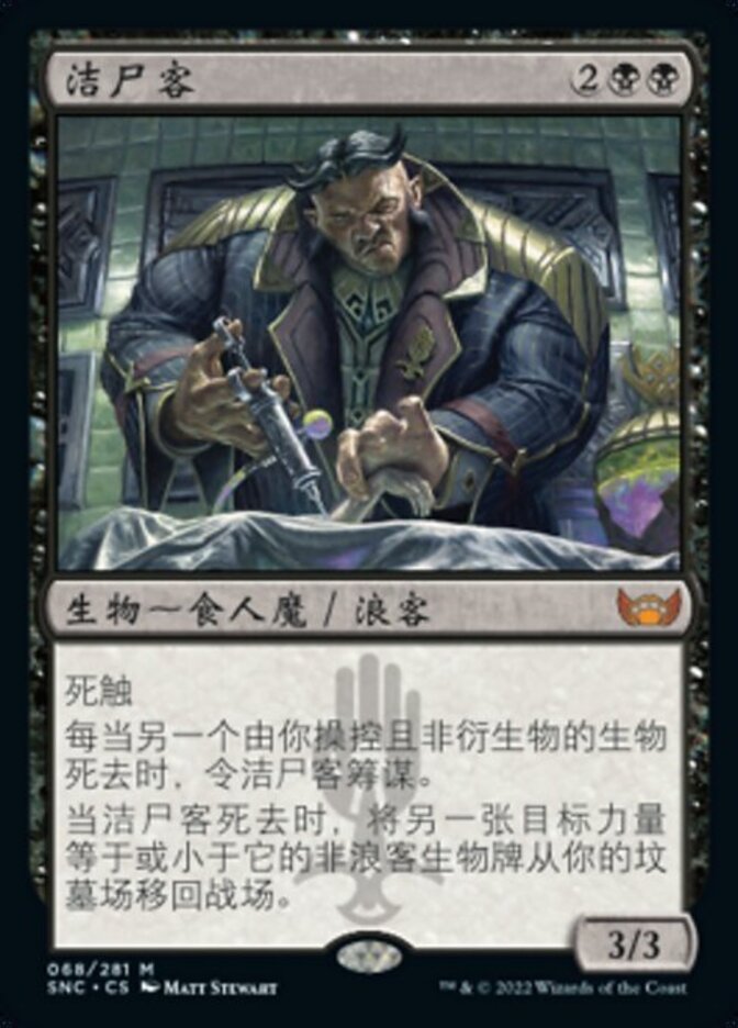 | Rules | Deathtouch Whenever another nontoken creature you control dies, Body Launderer connives. When Body Launderer dies, return another target non-Rogue creature card with equal or lesser power from your graveyard to the battlefield. |