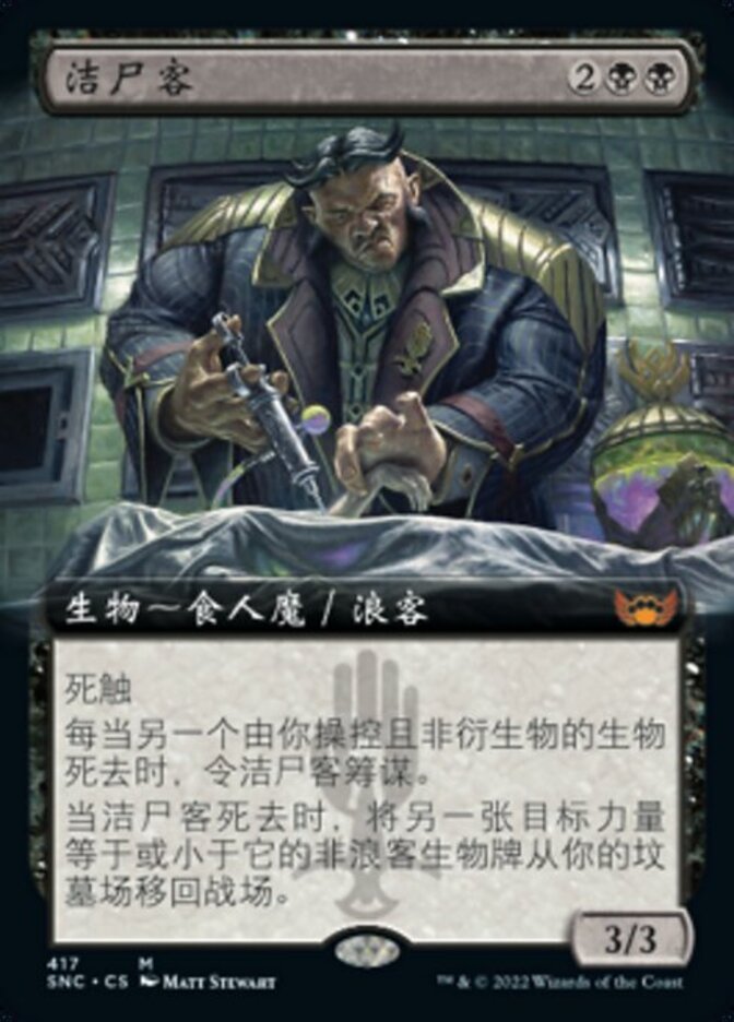 | Rules | Deathtouch Whenever another nontoken creature you control dies, Body Launderer connives. When Body Launderer dies, return another target non-Rogue creature card with equal or lesser power from your graveyard to the battlefield. |