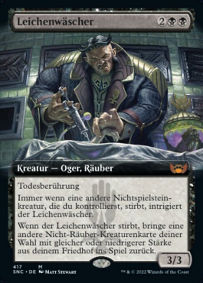 | Rules | Deathtouch Whenever another nontoken creature you control dies, Body Launderer connives. When Body Launderer dies, return another target non-Rogue creature card with equal or lesser power from your graveyard to the battlefield. |