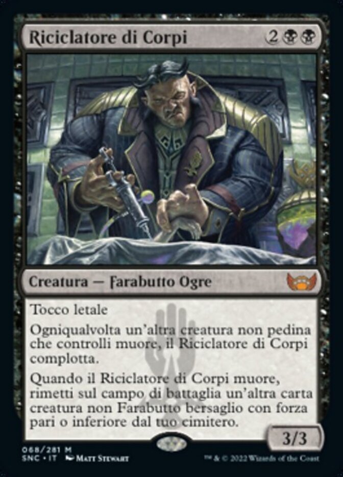 | Rules | Deathtouch Whenever another nontoken creature you control dies, Body Launderer connives. When Body Launderer dies, return another target non-Rogue creature card with equal or lesser power from your graveyard to the battlefield. |