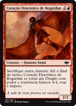 | Rules | Sacrifice another creature: Until end of turn, Bogardan Dragonheart becomes a Dragon with base power and toughness 4/4, flying, and haste. |