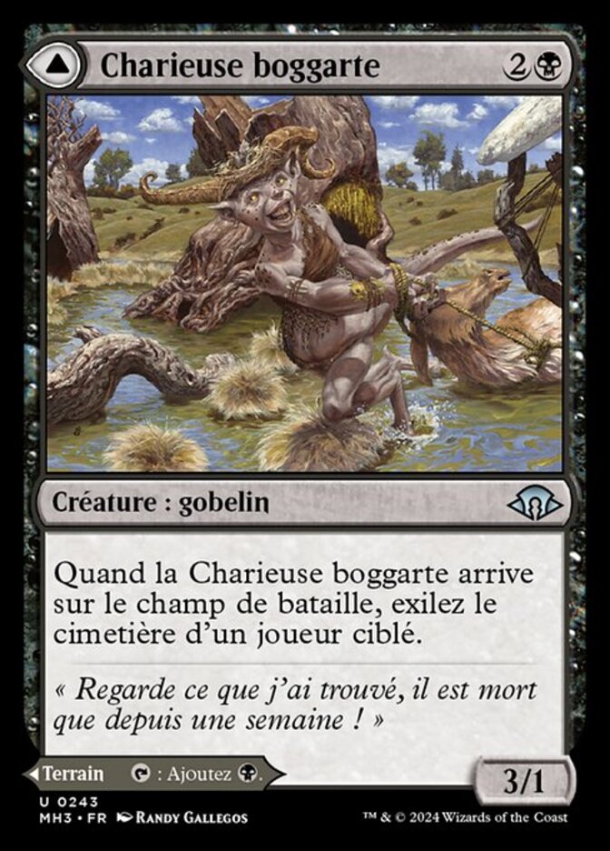 | Rules | When Boggart Trawler enters the battlefield, exile target player's graveyard. // As Boggart Bog enters the battlefield, you may pay 3 life. If you don't, it enters the battlefield tapped. : Add . |