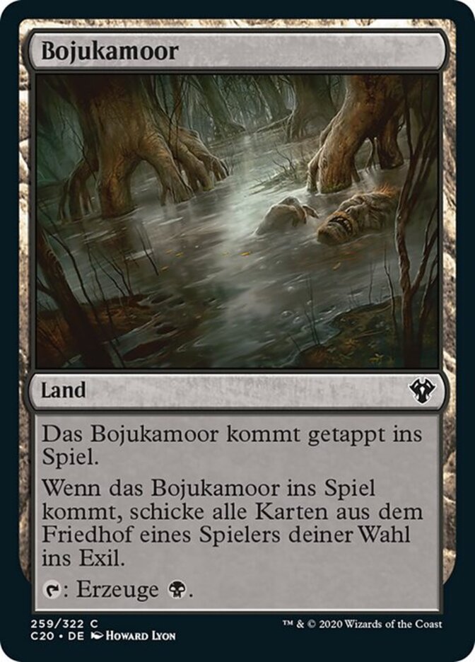 | Rules | Bojuka Bog enters the battlefield tapped. When Bojuka Bog enters the battlefield, exile target player's graveyard. : Add . |