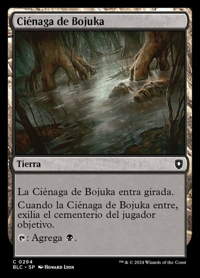 | Rules | Bojuka Bog enters the battlefield tapped. When Bojuka Bog enters the battlefield, exile target player's graveyard. : Add . |