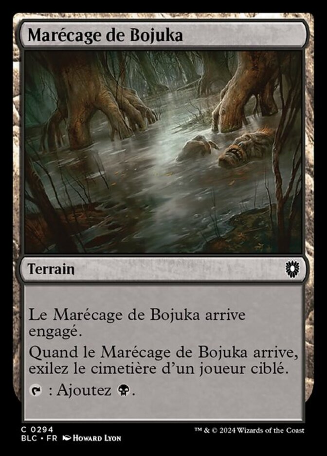 | Rules | Bojuka Bog enters the battlefield tapped. When Bojuka Bog enters the battlefield, exile target player's graveyard. : Add . |