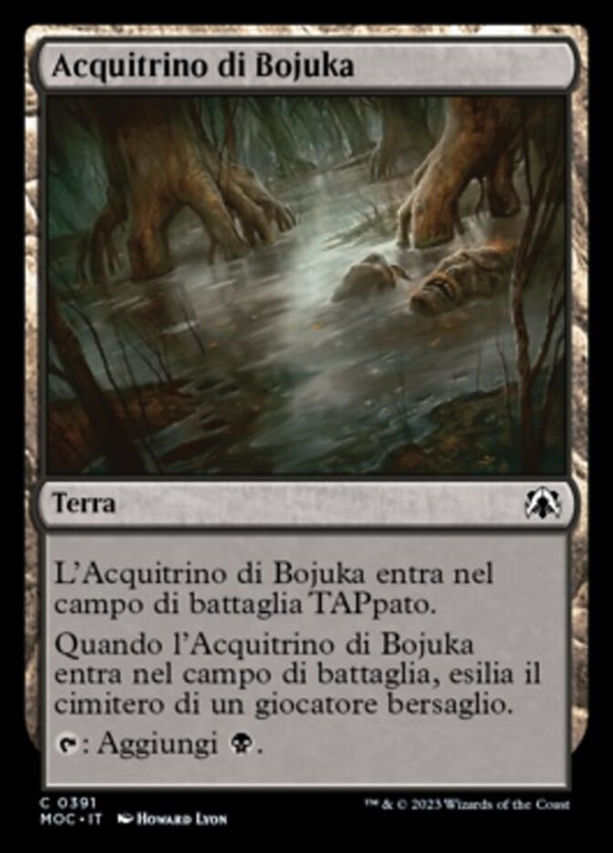 | Rules | Bojuka Bog enters the battlefield tapped. When Bojuka Bog enters the battlefield, exile target player's graveyard. : Add . |