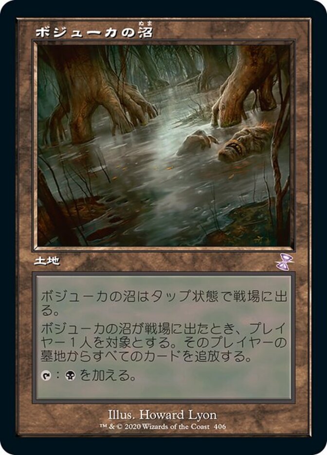 | Rules | Bojuka Bog enters the battlefield tapped. When Bojuka Bog enters the battlefield, exile target player's graveyard. : Add . |