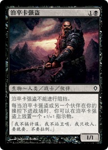 | Rules | Bojuka Brigand can't block. Whenever Bojuka Brigand or another Ally enters the battlefield under your control, you may put a +1/+1 counter on Bojuka Brigand. |