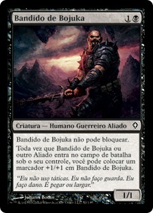| Rules | Bojuka Brigand can't block. Whenever Bojuka Brigand or another Ally enters the battlefield under your control, you may put a +1/+1 counter on Bojuka Brigand. |
