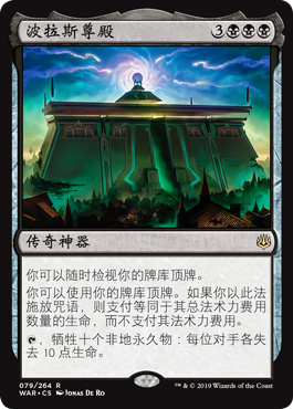 | Rules | You may look at the top card of your library any time. You may play lands and cast spells from the top of your library. If you cast a spell this way, pay life equal to its mana value rather than pay its mana cost. , Sacrifice ten nonland permanents: Each opponent loses 10 life. |