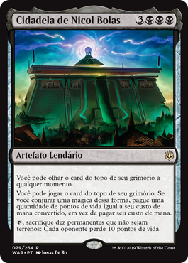 | Rules | You may look at the top card of your library any time. You may play lands and cast spells from the top of your library. If you cast a spell this way, pay life equal to its mana value rather than pay its mana cost. , Sacrifice ten nonland permanents: Each opponent loses 10 life. |