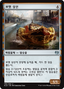 | Rules | When Bomat Bazaar Barge enters the battlefield, draw a card. Crew 3 (Tap any number of creatures you control with total power 3 or more: This Vehicle becomes an artifact creature until end of turn.) |
